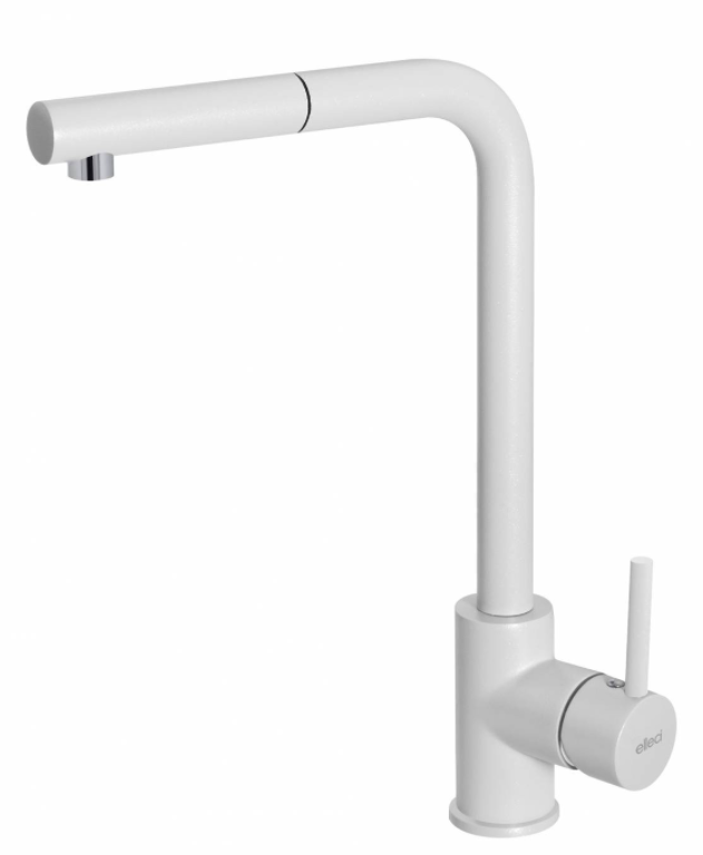 Dřezová páková baterie se sprchou ELLECI TRAIL PLUS G68 Otočná o 360 st. Rozměry: 330x223 mm Průměr: 35 mm Provedení: G68 (White) BARVA: BÍLÁ ROZMĚR: 330 X 223 MM