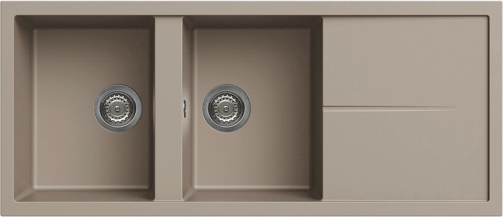 Integrovaná oblast pro příslušenství v odkapávači, vybavená předvrtanými otvory, které vám umožňují instalovat doplňky: excentrické ovládání odpadu, dřezovou baterii s vytahovací sprchou a dávkovač saponátu.