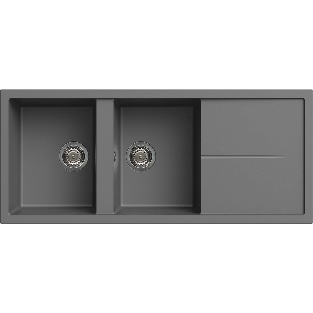 Integrovaná oblast pro příslušenství v odkapávači, vybavená předvrtanými otvory, které vám umožňují instalovat doplňky: excentrické ovládání odpadu, dřezovou baterii s vytahovací sprchou a dávkovač saponátu.