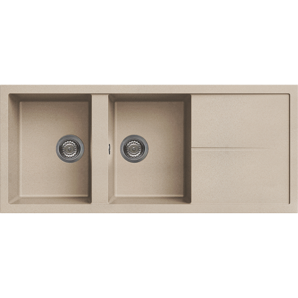 Integrovaná oblast pro příslušenství v odkapávači, vybavená předvrtanými otvory, které vám umožňují instalovat doplňky: excentrické ovládání odpadu, dřezovou baterii s vytahovací sprchou a dávkovač saponátu.