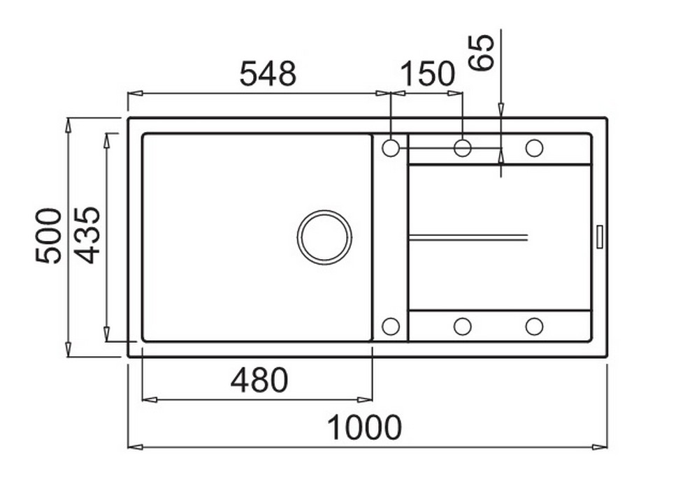 Integrovaná oblast pro příslušenství v odkapávači, vybavená předvrtanými otvory, které vám umožňují instalovat doplňky: excentrické ovládání odpadu, dřezovou baterii s vytahovací sprchou a dávkovač saponátu.