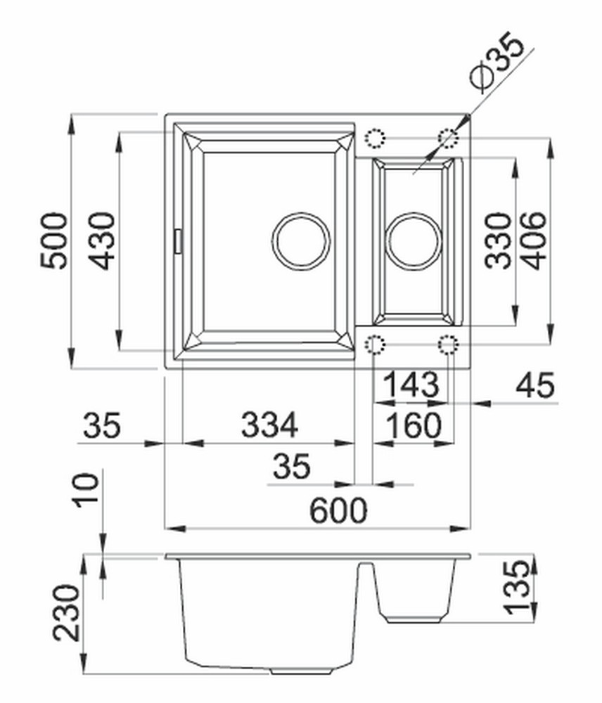 Jednodřez s vaničkou ELLECI EASY 150 G48