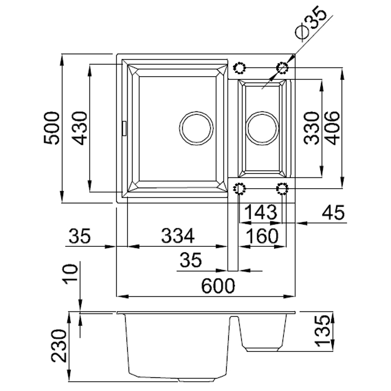 Jednodřez s vaničkou  ELLECI EASY 150 G51