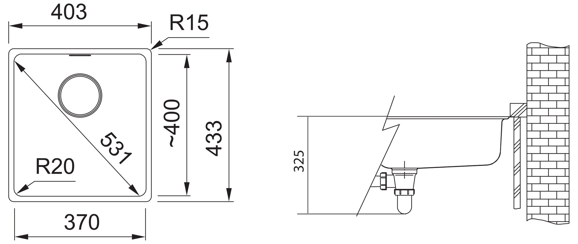 • Rozměr dřezové nádoby: 370 x 400 x 200 mm