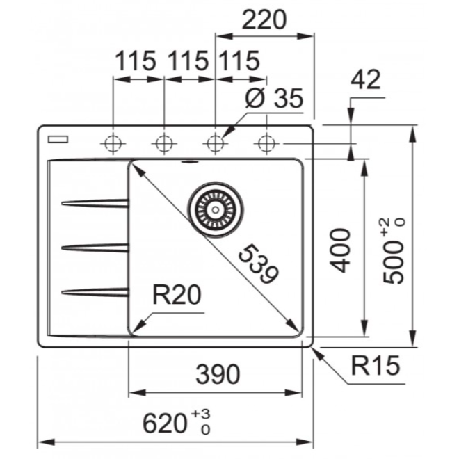 Rozměr dřezu: 620 x 500 mm