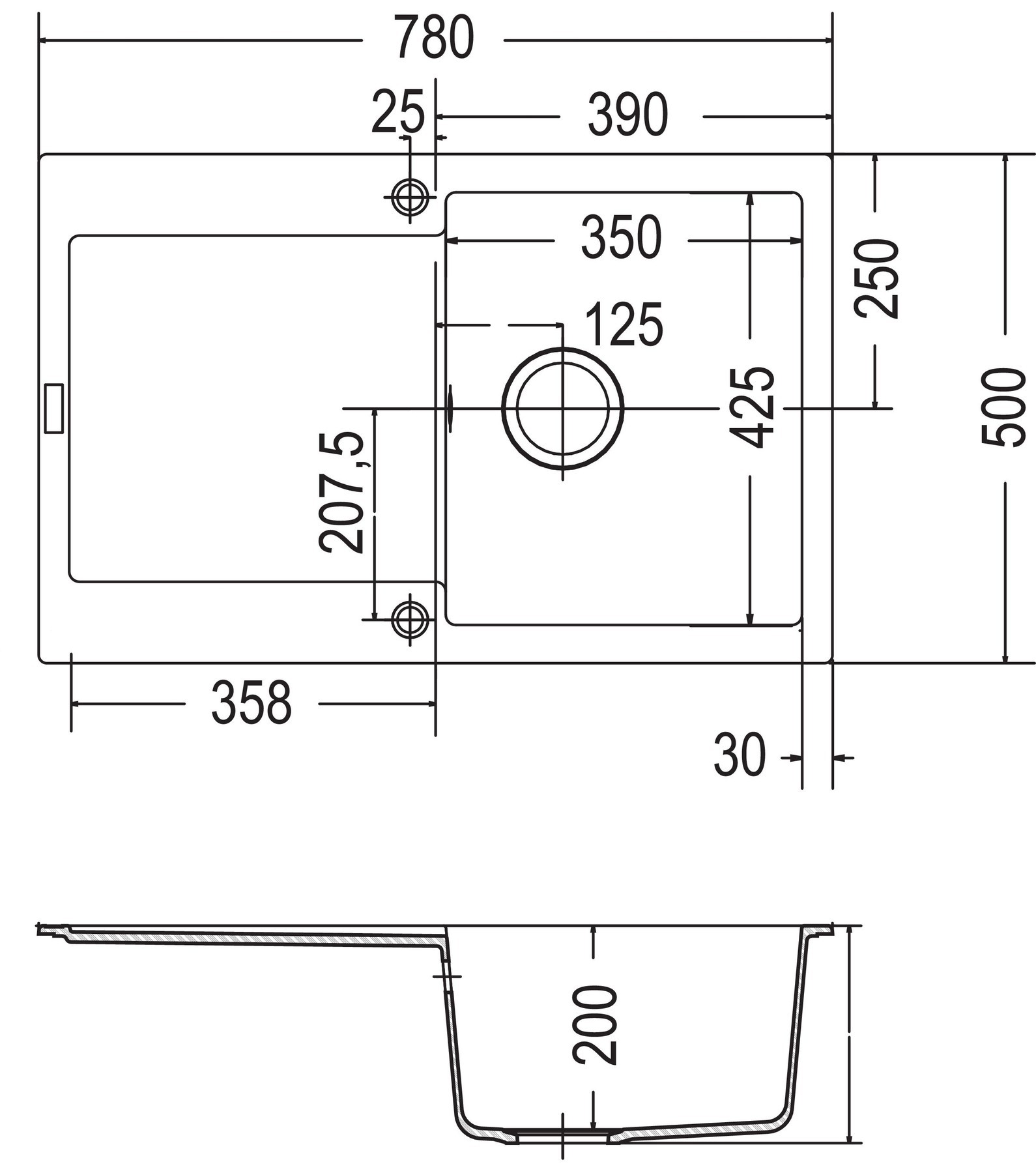 • Rozměr dřezové nádoby: 350 x 425 x 200 mm
