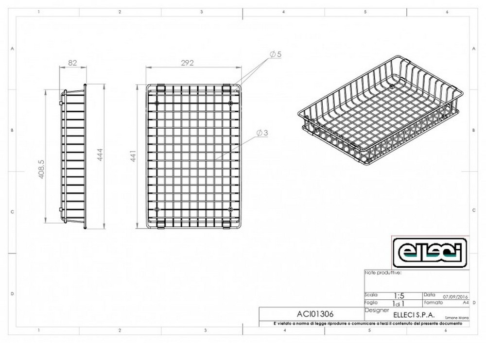 Nerezový koš ELLECI ACI01306 Vhodné pro dřezy BEST ( mimo 360) Rozměr: 444 x 292 x 82 mm