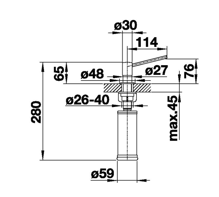 Při montáži nádobky je třeba dbát, aby se tato nedotýkala žádných segmentů pod dřezem a nebyla tak vychýlena ze své osy. Rovněž dbejte, aby nedocházelo k dotyku sprchové hadice od baterie s nádobkou.