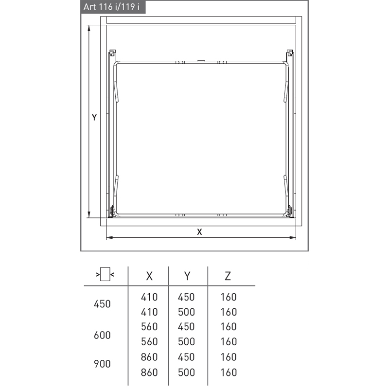Plnovýsuvný koš s tlumeným dovřením a úchyty dvířek SIGE ART116i (ART-116i) pro korpus šíře 600mm. Šířka korpusu 600mm Výsuv GRASS