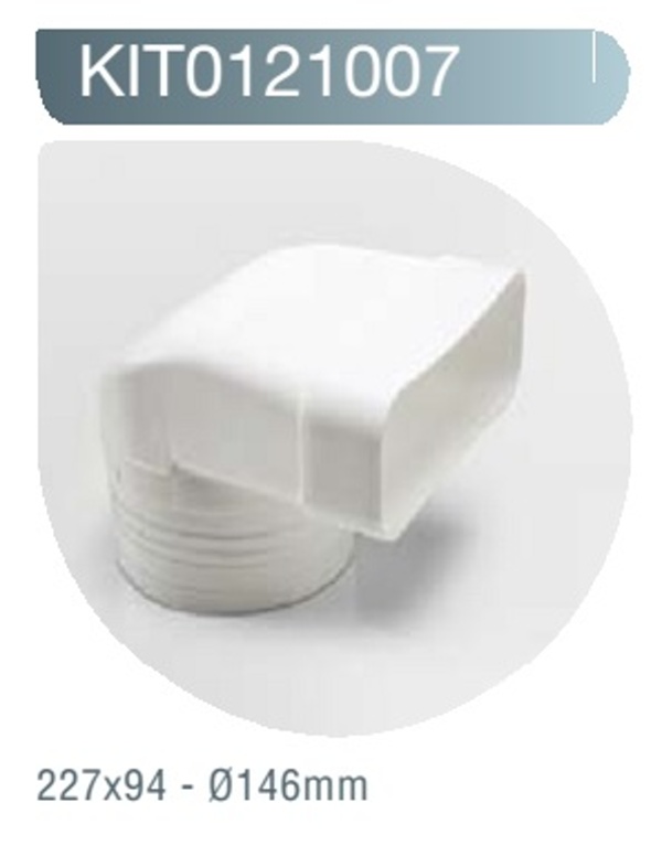 Ploché potrubí ELICA KIT0121007 NIKOLATESLA ODTAH Přechodová spojka na průměr 150mm Rozměry: 227 x 94 mm - průměr 146mm