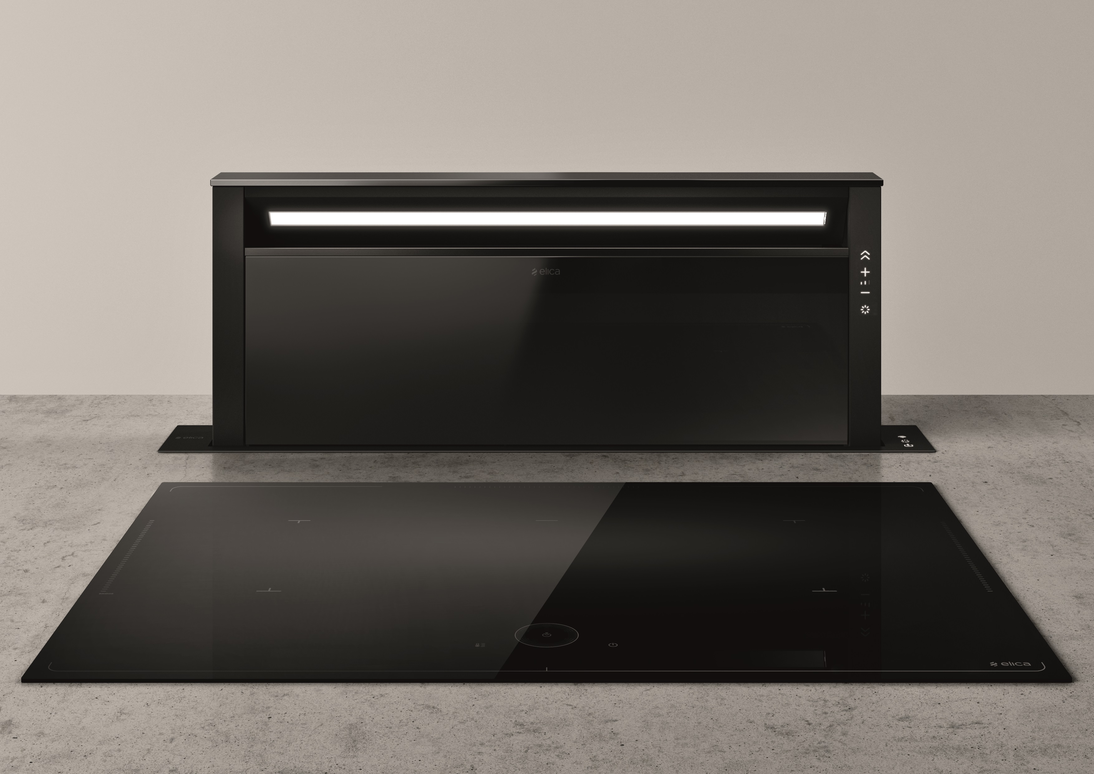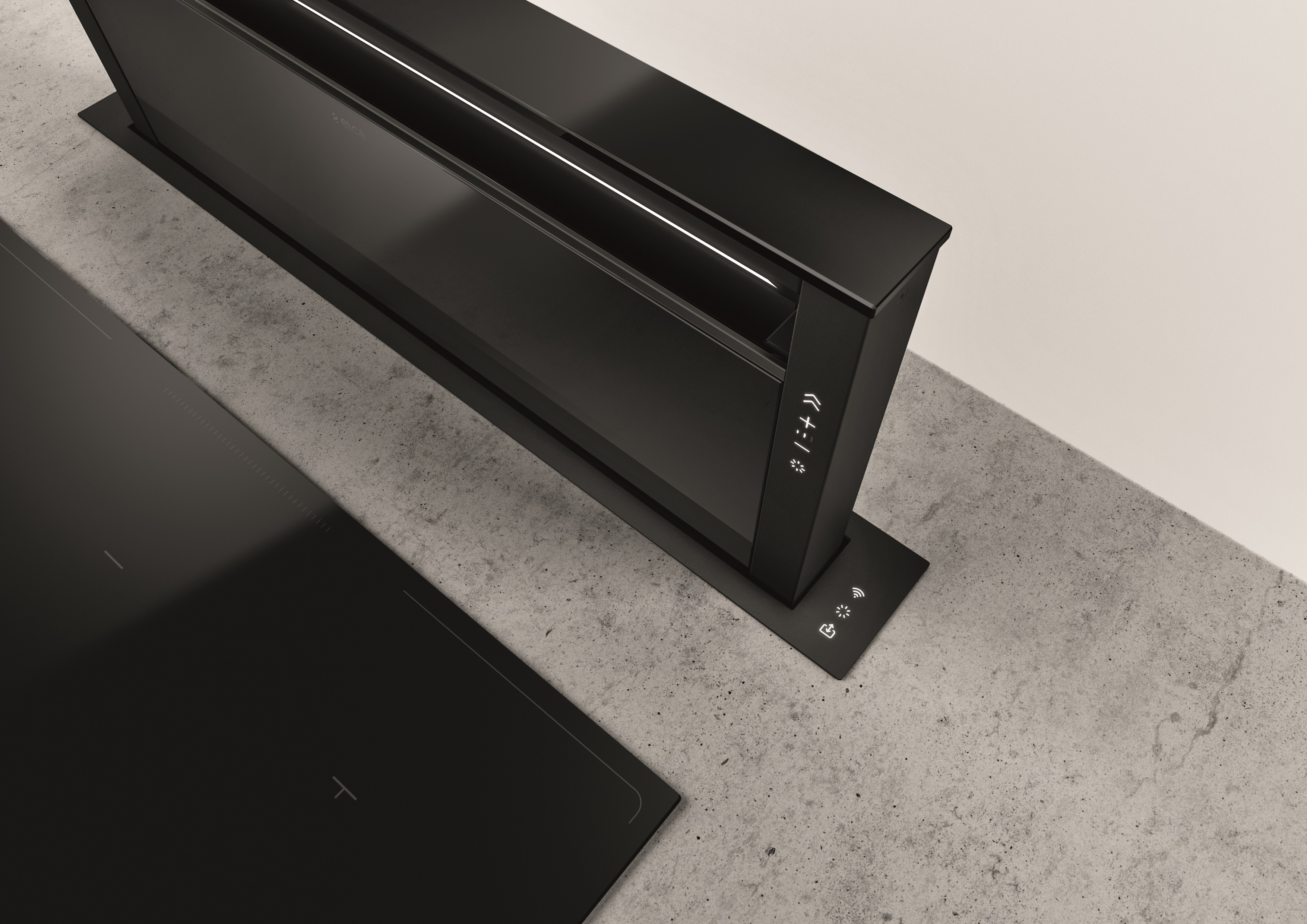Maximální svoboda stylu designu, prostoru a ovládání odsavače par, který se vysune z pracovní kuchyňské desky pouze pokud je opravdu potřebný.
