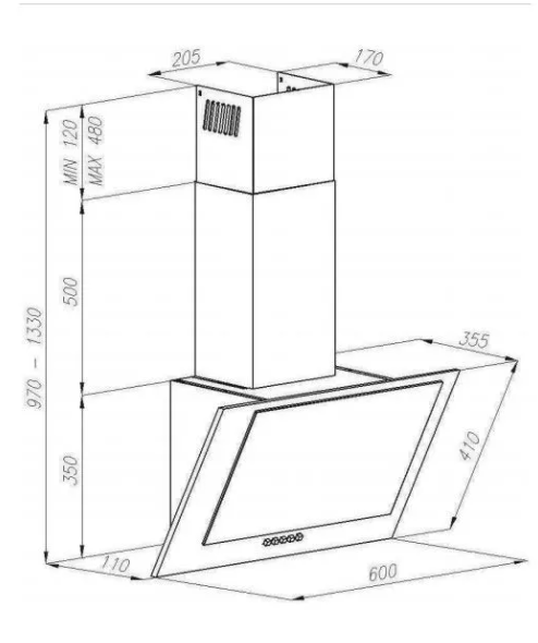 Komínový odsavač v šířce 60 cm