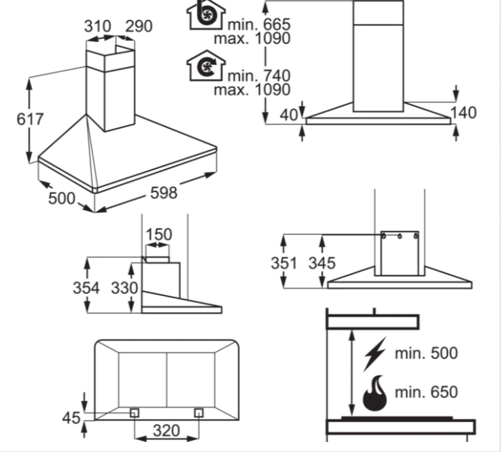 Rozměry V x Š x H (mm): 665 x 598 x 500