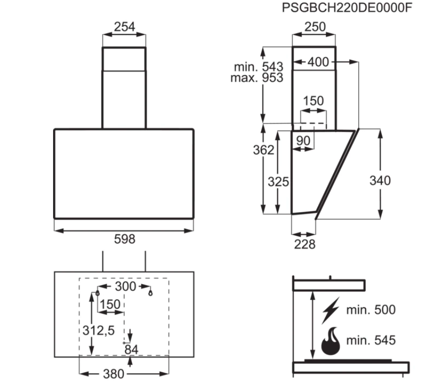 Min. odstup od plynové varné desky (cm): 54