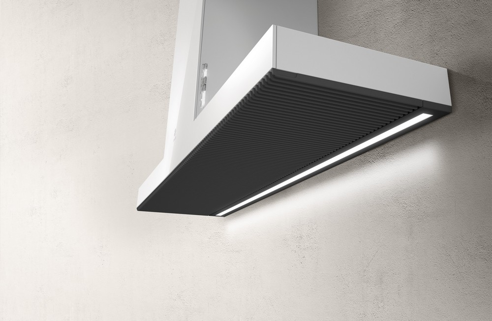 "Estetická linearita se projevuje u hliníkových mřížek s litinovým efektem, které charakterizují všechny tyto odsavače par. Jsou snadno odstranitelné a jsou vybaveny blokovacím systémem, který zabraňuje náhodnému pádu.