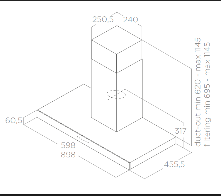 ELICA JOY  je komínový odsavač par (digestoř) z nerezové oceli doplněný o černé sklo. Odsavač par s výkonem 280-580 m3/h a v intenzivním výkonu dokonce 710 m3/h, mile překvapí hlučností pouze 51-73 db(A) a dotykovým ovládáním.