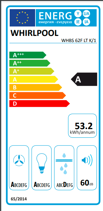 Energetická třída: A Třída dynamické účinnosti kapalin: A Třída účinnosti filtrace tuků: D Třída světelné účinnosti: A Celková roční spotřeba energie (kWh): 53.2 Hladina hluku ...Více informací