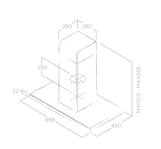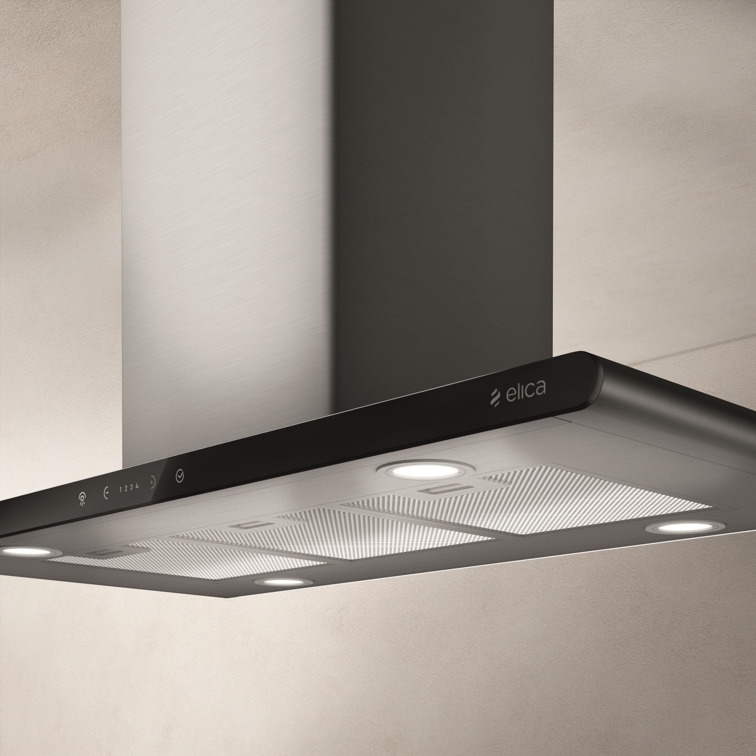 ELICA GALAXY  je ostrůvkový odsavač par (digestoř) z nerezové oceli doplněný o černé sklo. Odsavač par s výkonem 288-559 m3/h a v intenzivním výkonu dokonce 647 m3/h, mile překvapí hlučností pouze 52-73 db(A) a dotykovým ovládáním.