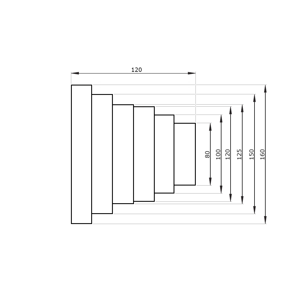 Kruhová redukce vícenásobná Ø 80 - 100 - 120 - 125 - 150 mm