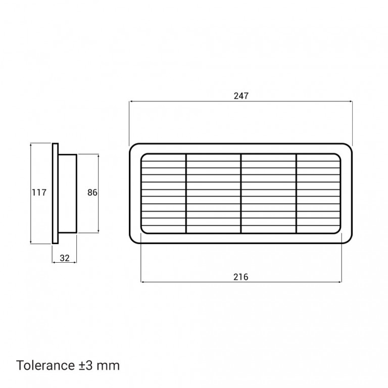 Plastová ventilační mřížka s pevnými lamelami a přírubou slouží k estetickému ukončení hranatého potrubí o rozměru 220x90 mm. Díky použitému materiálu je pevná, poddajná a odolná až do teploty 40 °C. Tato černá interiérová mřížka s jednoduchou montáží je kompatibilní s hranatým potrubím o stejném rozměru.