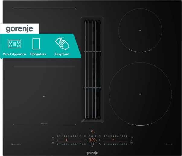 Seznamte se s varnou deskou s integrovaným odsavačem Gorenje, která dokonale spojuje styl a funkčnost. Tento inovativní spotřebič nahrazuje samostatný odsavač, uvolňuje cenné místo v kuchyni a dodává jí moderní vzhled. Výkonný odsavač rychle a účinně odstraňuje kouř, páru a pachy z vaření, takže kuchyně zůstává svěží a čistá. Intuitivní ovládání a elegantní design dělají z této varné desky s odsavačem ideální řešení pro moderní kuchyně s důrazem na úsporu prostoru.