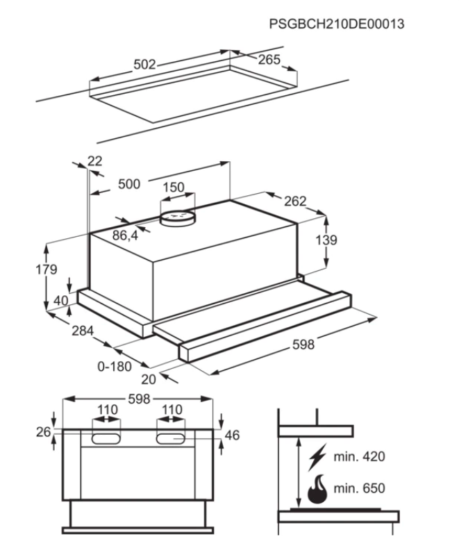 Typ inštalácie: Teleskopický, šírka 60 cm