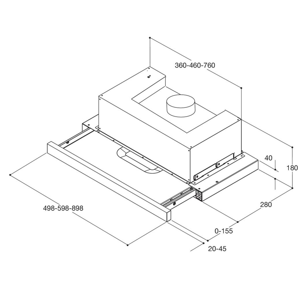 Tento odsavač je vhodný pro zabudovaní do kuchyňské skříňky.