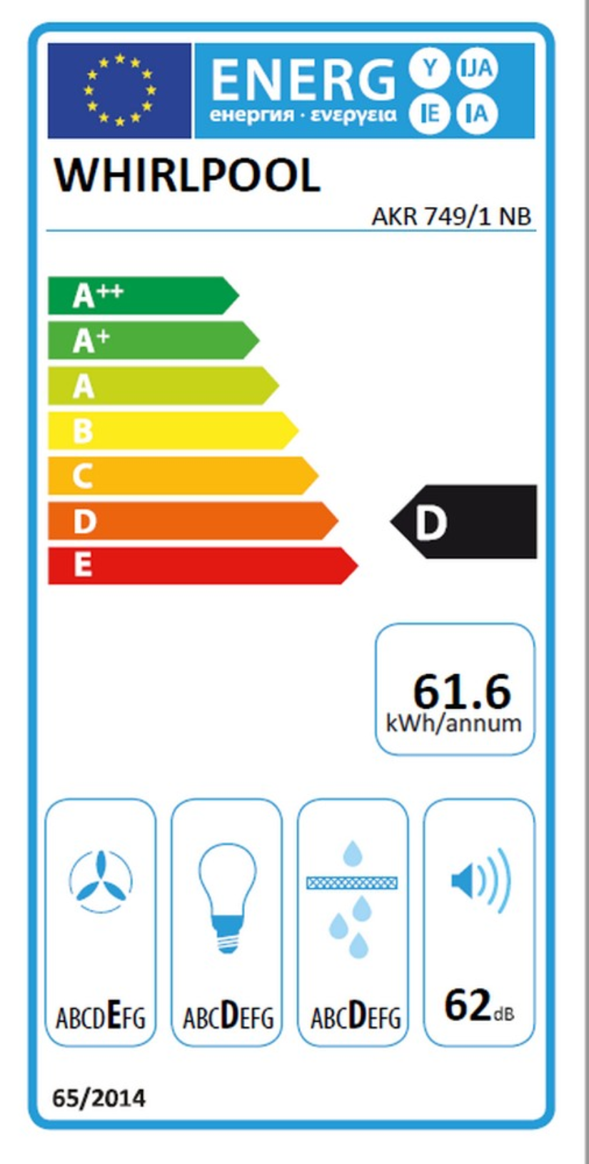 Index energetické účinnosti (2010/30 / EC) 61,6