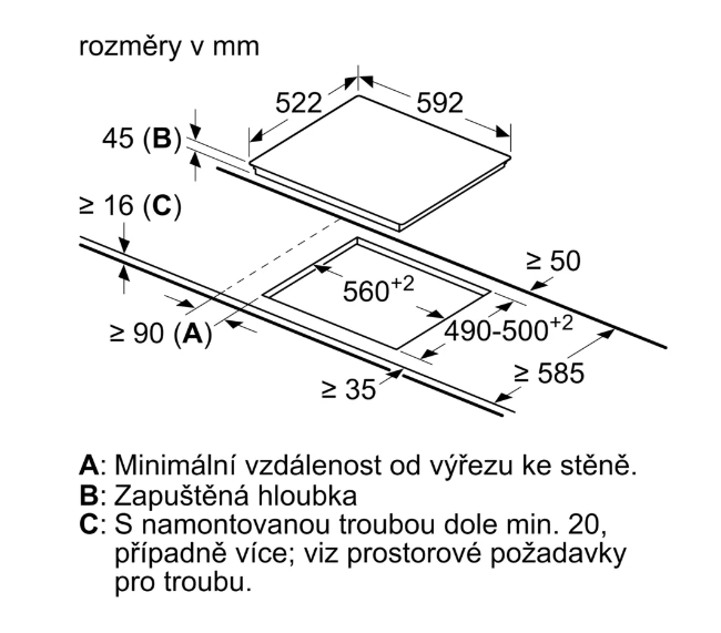 Požadovaná velikost otvoru pro instalaci (v x š x h)