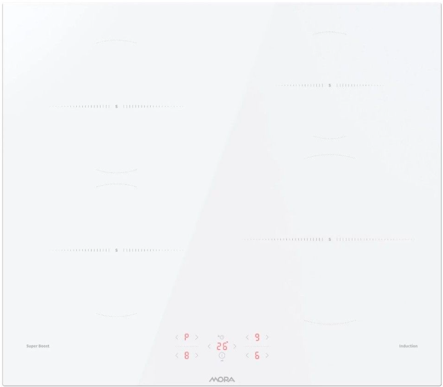 Indukční vestavná sklokeramická deska MORA VDIT 65D CW v moderním vílém provedení s praktickými broušenými hranami, díky čemuž ji lze jednoduše zabudovat i do roviny s pracovní deskou, disponuje 4 indukčními zónami, které zahřívají jen dno nádoby a z důvodu nízké teploty povrchu varné desky nedojde k připálení a deska se velmi snadno čistí. Indukční vaření je nejen rychlé, úsporné, ale také velmi bezpečné. Varná deska disponuje extra výkonem SuperBoost, který zvyšuje intenzitu ohřívání, pro zkrácení času, potřebného na ohřev. S funkcí Timer lze nastavit časovač vaření až na 99 minut a varná deska se po uplynutí času automaticky vypne. Díky dětské pojistce nyní nechat děti v kuchyni bez dozoru nebylo nikdy bezpečnější, protože tato funkce jim brání plotýnku zapnout.