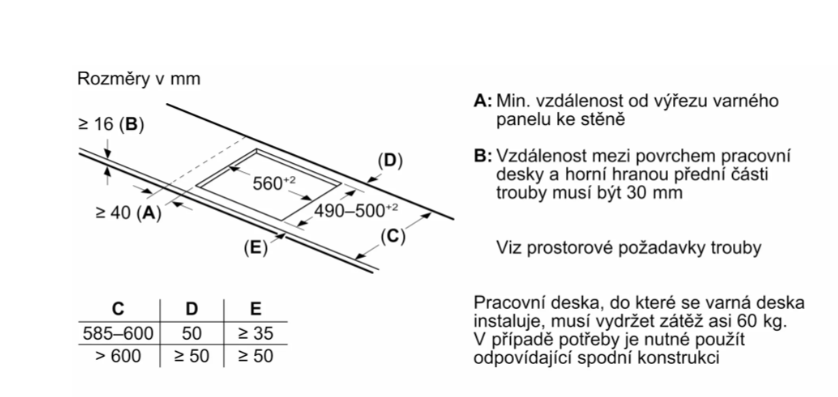 Požadovaná velikost otvoru pro instalaci (v x š x h)