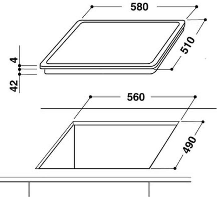 Rozměry pro vestavbu: 4,2×56×49cm (VxŠxH)