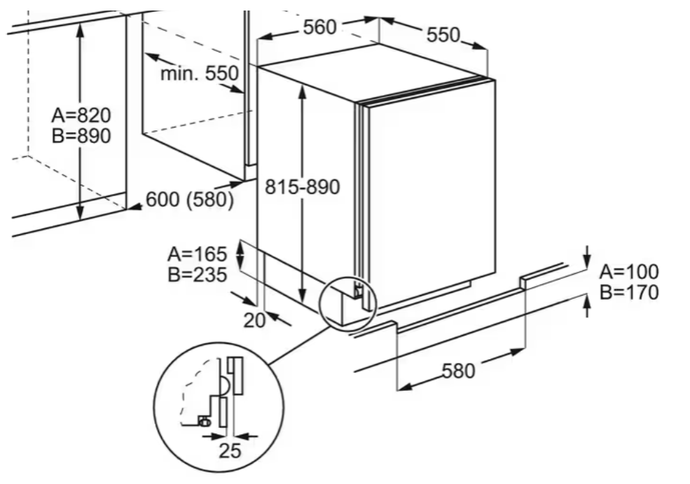 Vestavné rozměry (mm): 820 x 600 x 550
