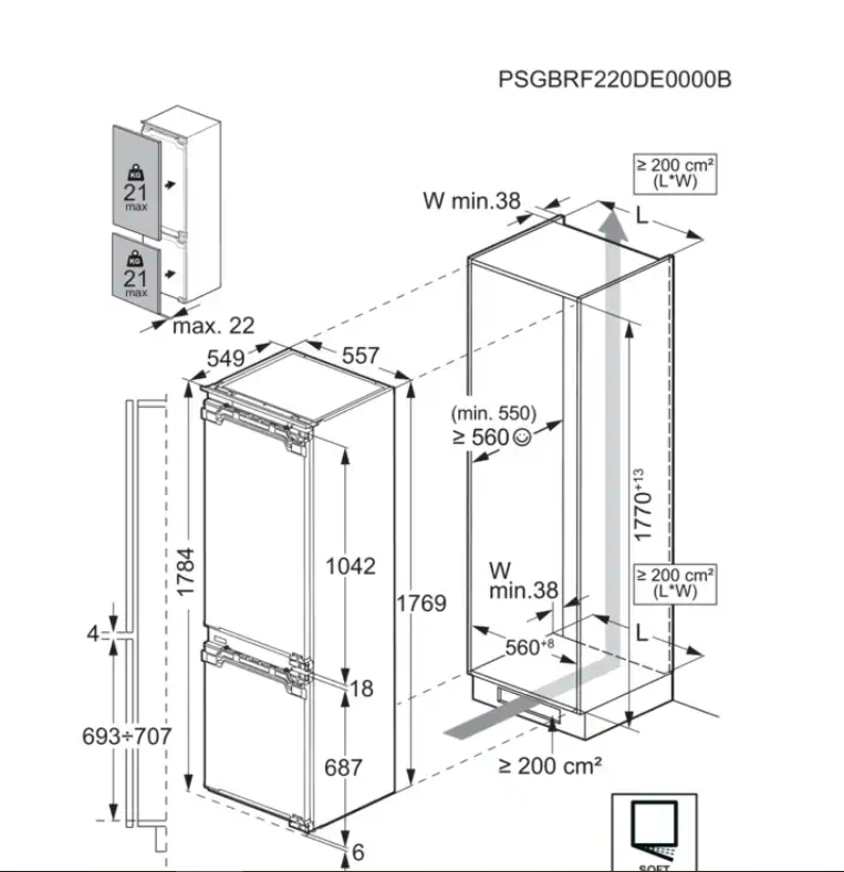 Rozměry spotřebiče VxŠxH (mm): 1769 x 557 x 549