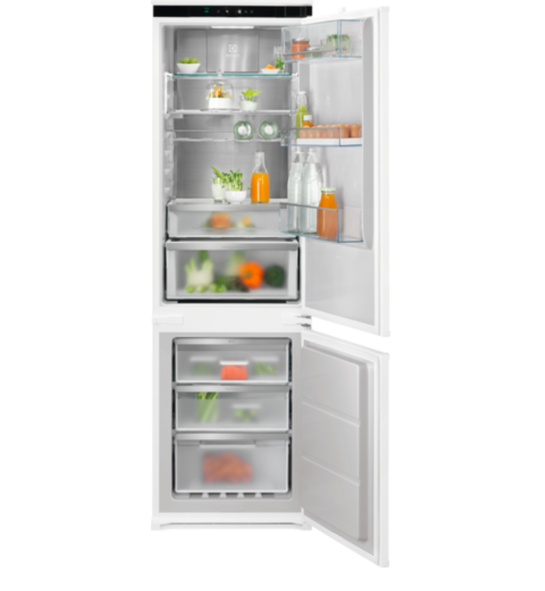 Chladnička s mrazničkou 800 Cooling 360° s elegantním vnitřním prostorem z nerezové oceli pomáhá omezit plýtvání potravinami. O 30 % lepší rozložení teploty na každé polici zajišťuje ochranu potravin bez ohledu na to, kam je uložíte.