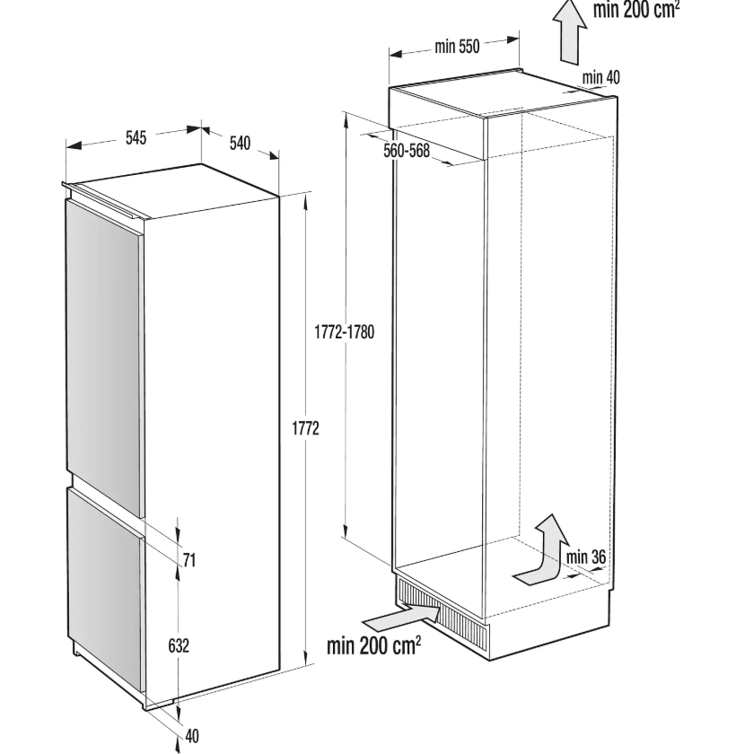 rozměry spotřebiče (v x š x h) 1.772 x 540 x 540 mm