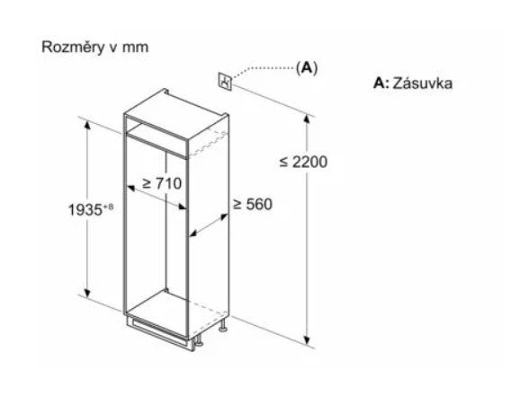Požadovaná velikost otvoru pro instalaci (v x š x h): 1940 x 710 x 560