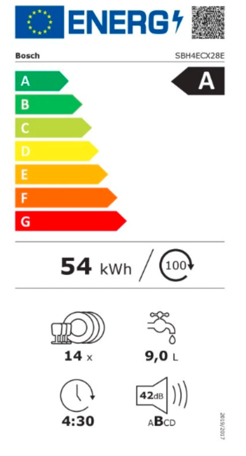 Výkon a spotřeba třída energetické účinnosti:¹ A energie² / voda³: 54 kWh / 9 l kapacita: 14 sad nádobí doba trvání programu:⁴ 4:30 h:min hladina hluku: 42 dB(A) re 1 pW třída ...Více informací