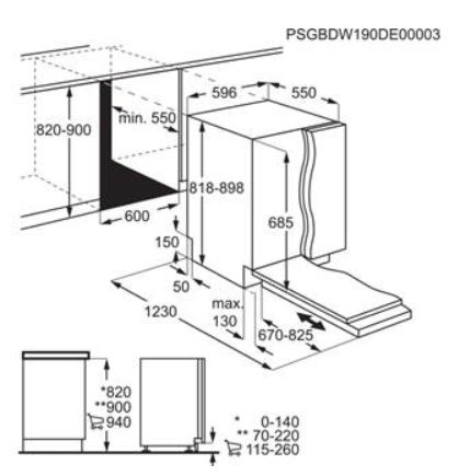 Vestavné rozměry V(min/max)xŠxH (mm): 820/900 x 600 x 570