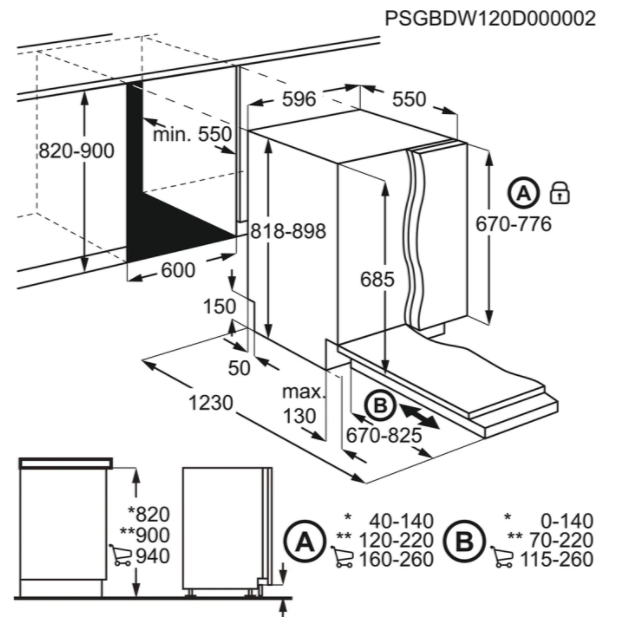Vestavné rozměry V(min/max)xŠxH (mm): 820/900 x 600 x 570