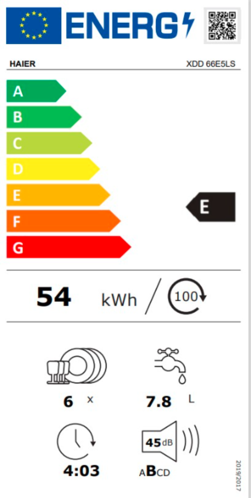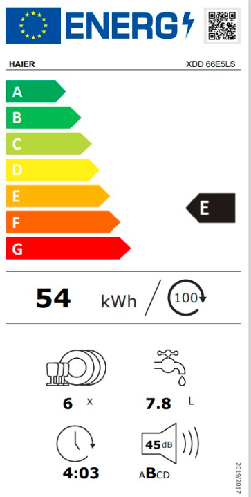 Specifikace produktu Vestavná myčka se dvěma zásuvkami Haier XDD66ESLS Hlavní vlastnosti Třída energetické účinnosti: E Jmenovitá kapacita (sady nádobí): 6+6 Spotřeba energie ...Více informací