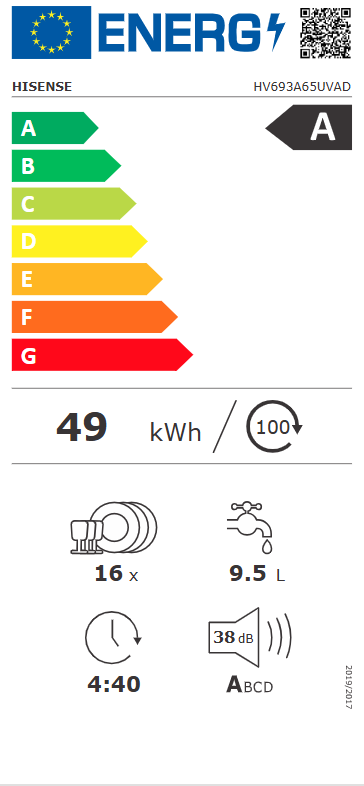 Díky použití prémiových izolačních materiálů a dokonale optimalizovaného mycího cyklu dosahuje myčka mimořádně tichého provozu – pouhých 38 dB během mytí. S nočním programem lze hlučnost ještě snížit na pouhých 36 dB. Myčka je tak tichá, že ji během provozu téměř neuslyšíte.