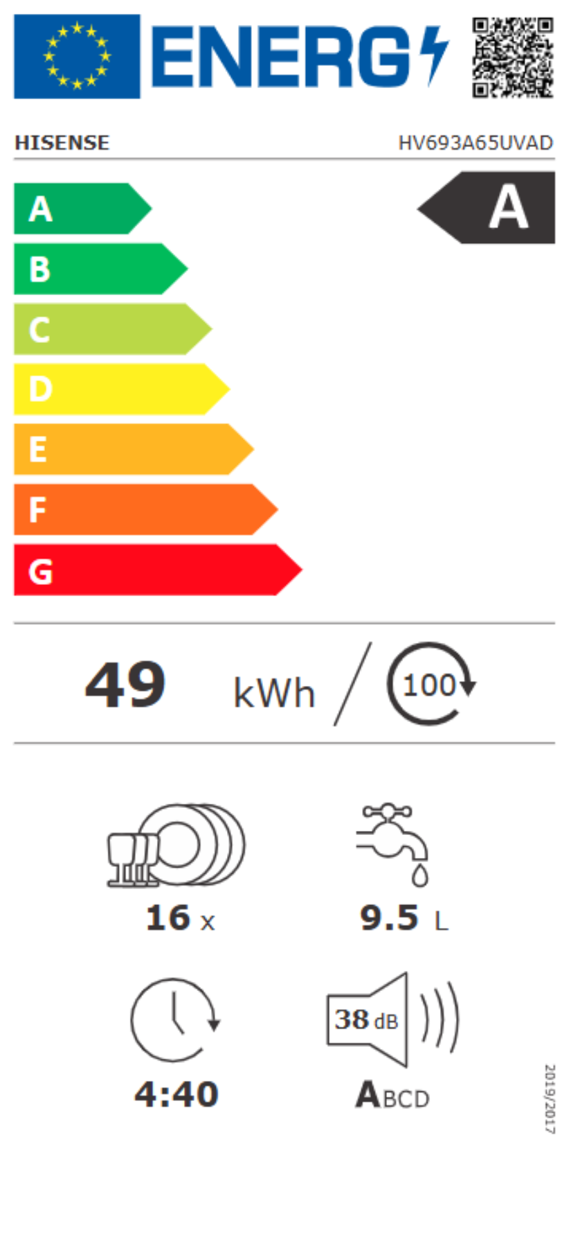 Vestavná myčka s ohledem na životní prostředí. Nabízí výjimečnou úsporu energie o 10 % lepší než standardní třída A. Jeden mycí cyklus spotřebuje jen 0,5 kWh, takže šetříte jak elektřinu, tak peníze. Užívejte si zářivě čisté nádobí s nižšími účty za energie.*Na základě interního testování jsou příslušné modely s vylepšenými parametry mytí až o 10 % účinnější, než se vyžaduje pro dosažení limitu energetické třídy A podle nařízení (EU) č. 2019/2014.