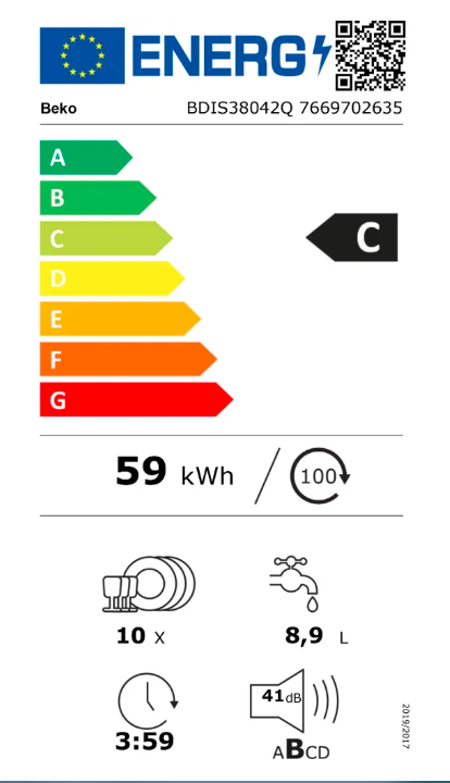 - Spotřeba energie (100 cyklů): 59 kWh