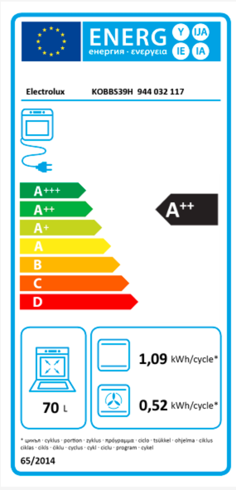 | Objem trouby L | 70 |