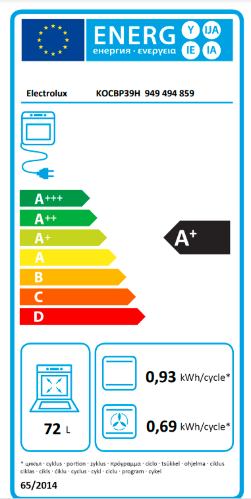 | Objem trouby L | 72 |