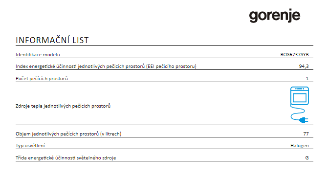 | Objem trouby L | 77 |