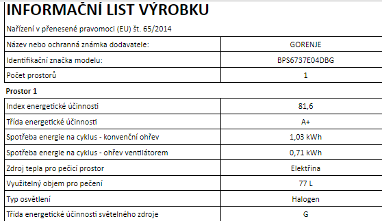 | Objem trouby L | 77 |