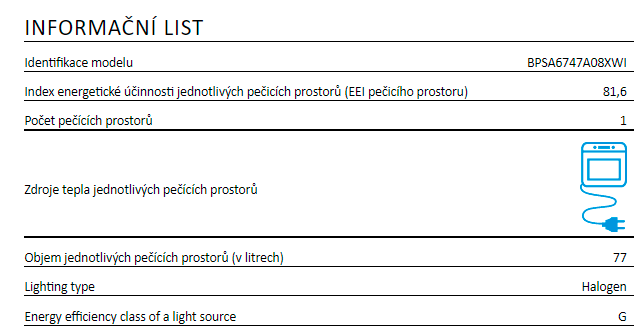 Informace energetické nálepky / Vlastnosti :