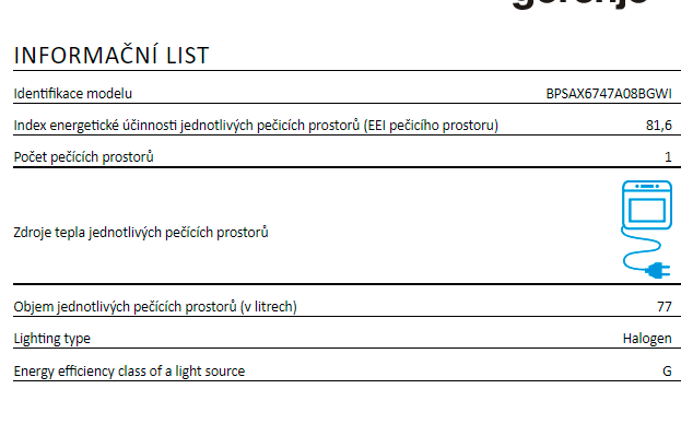 Značka výrobce GORENJE Model BPSAX6747A08BGWI Art. nb. (artiklové číslo) 739571 EAN kód 3838782557651 Základní barva výrobku Černá Jet Konstrukce Vestavný Typ ovládání Bez kon ...Více informací